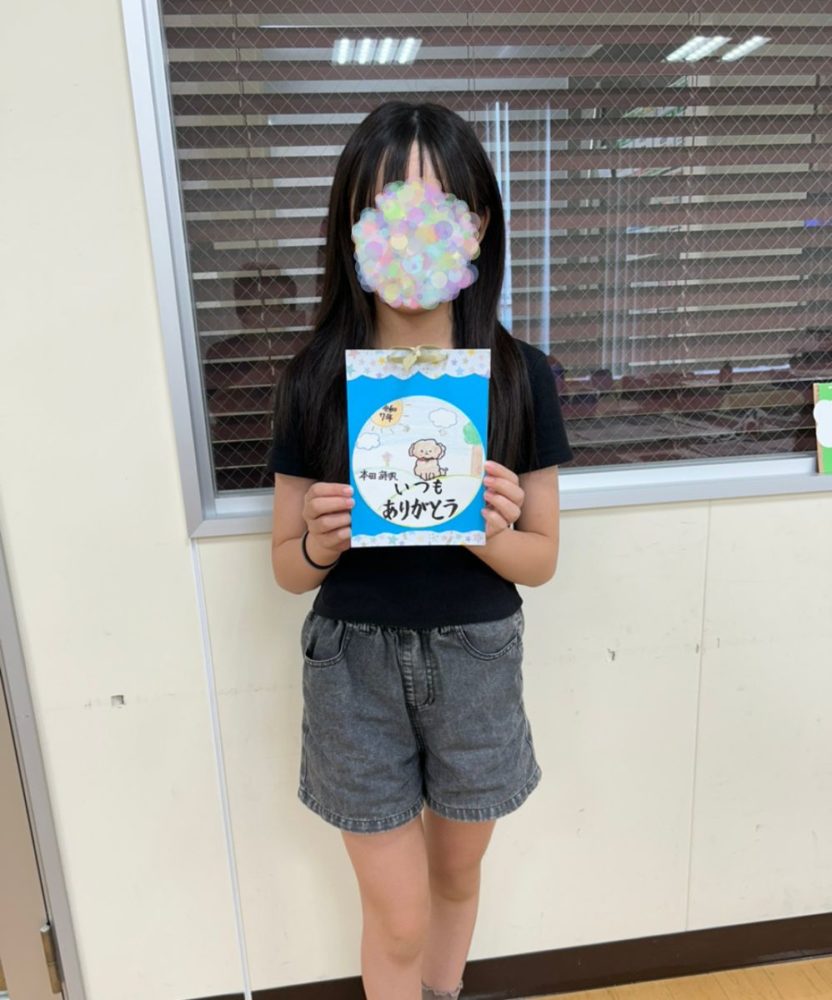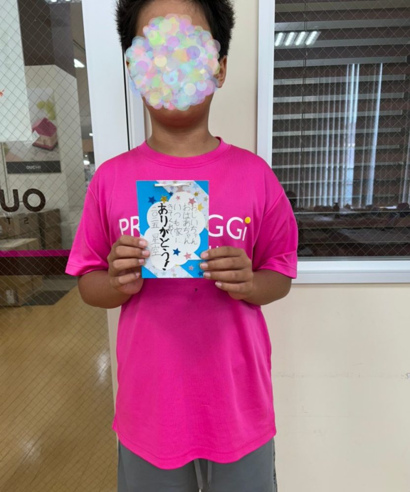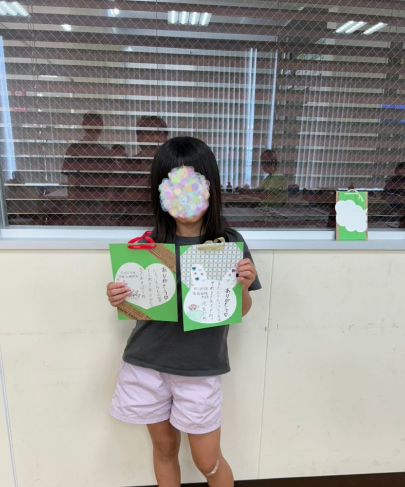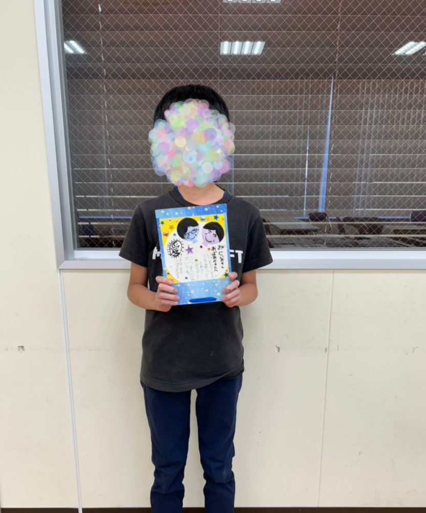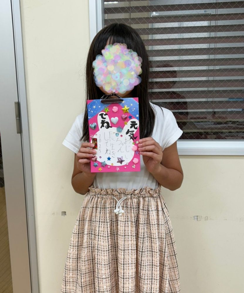 今回の敬老カードは、暑中見舞い作成と重なり、時間の関係でわたくしが台紙を作成したものを使用してもらいましたが、自身で台紙から作成した学童さんもおりました。